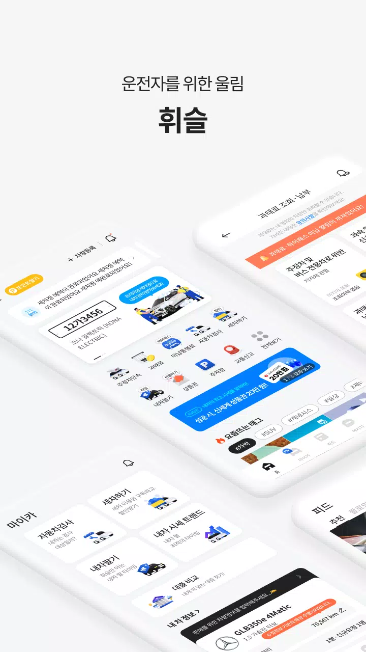 - 휘슬 feed and chat: Share stories, communicate with drivers through profiles or car numbers, and collect points for mobile coupons.